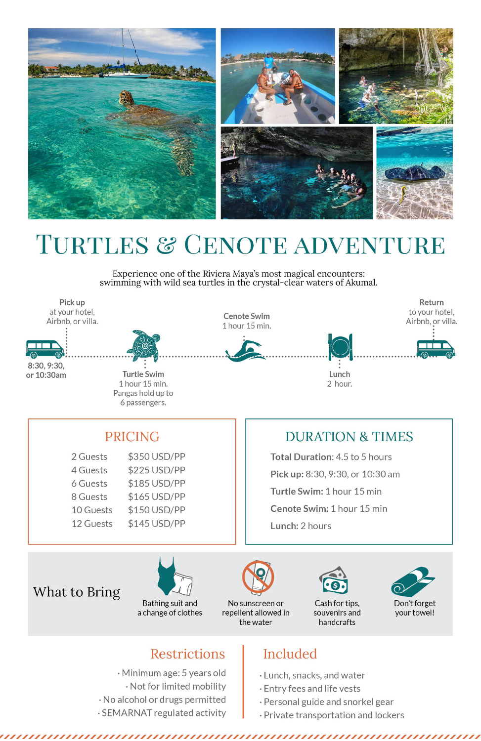 We will return you to your final stop at your villa or Airbnb after an amazing day in the Riviera Maya