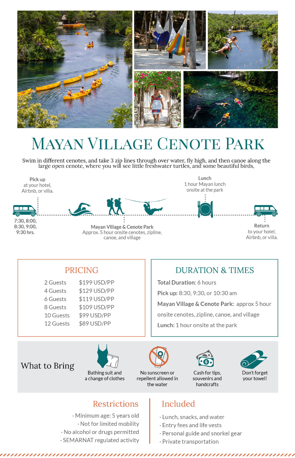 - Add on Guided visit of Tulum archeological site for $60 USD per guest- 2 hour average duration